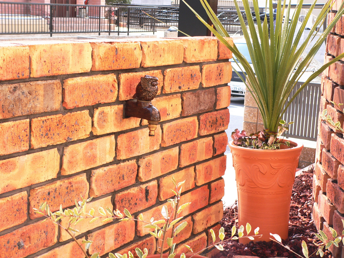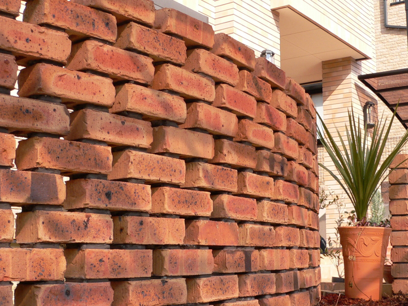 塀のレンガをずらして空間をつくり、プライバシーを守りつつも 開放感のあるスタイルにしました。