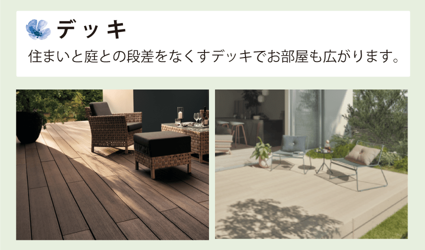 開放感とくつろぎに満ちたデッキのある生活を実現します。