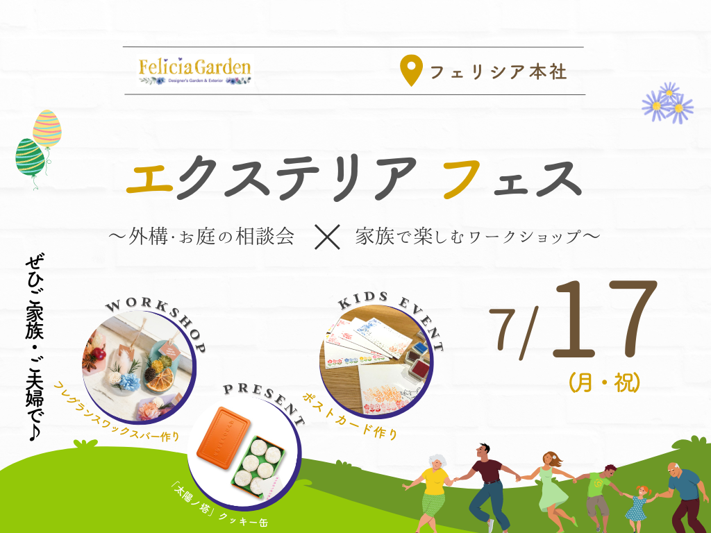 「外構・庭を家族で楽しみながら、検討してほしい」そんな願いを込めて開催する、フェリシアの【エクステリア フェス】♪