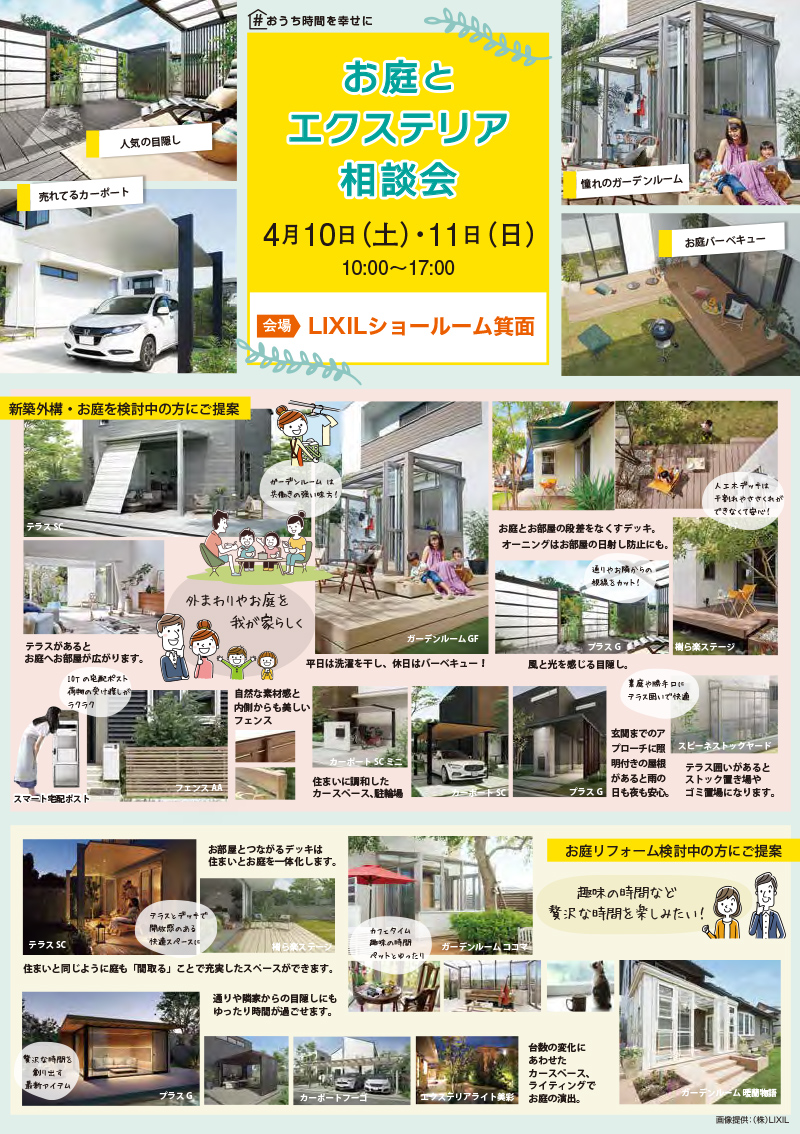 4月10日(土)、11日(日)LIXILショールーム箕面にて「お庭とエクステリア相談会」を開催いたします。