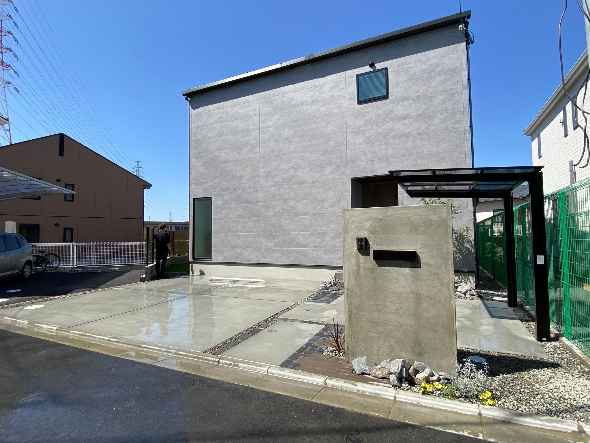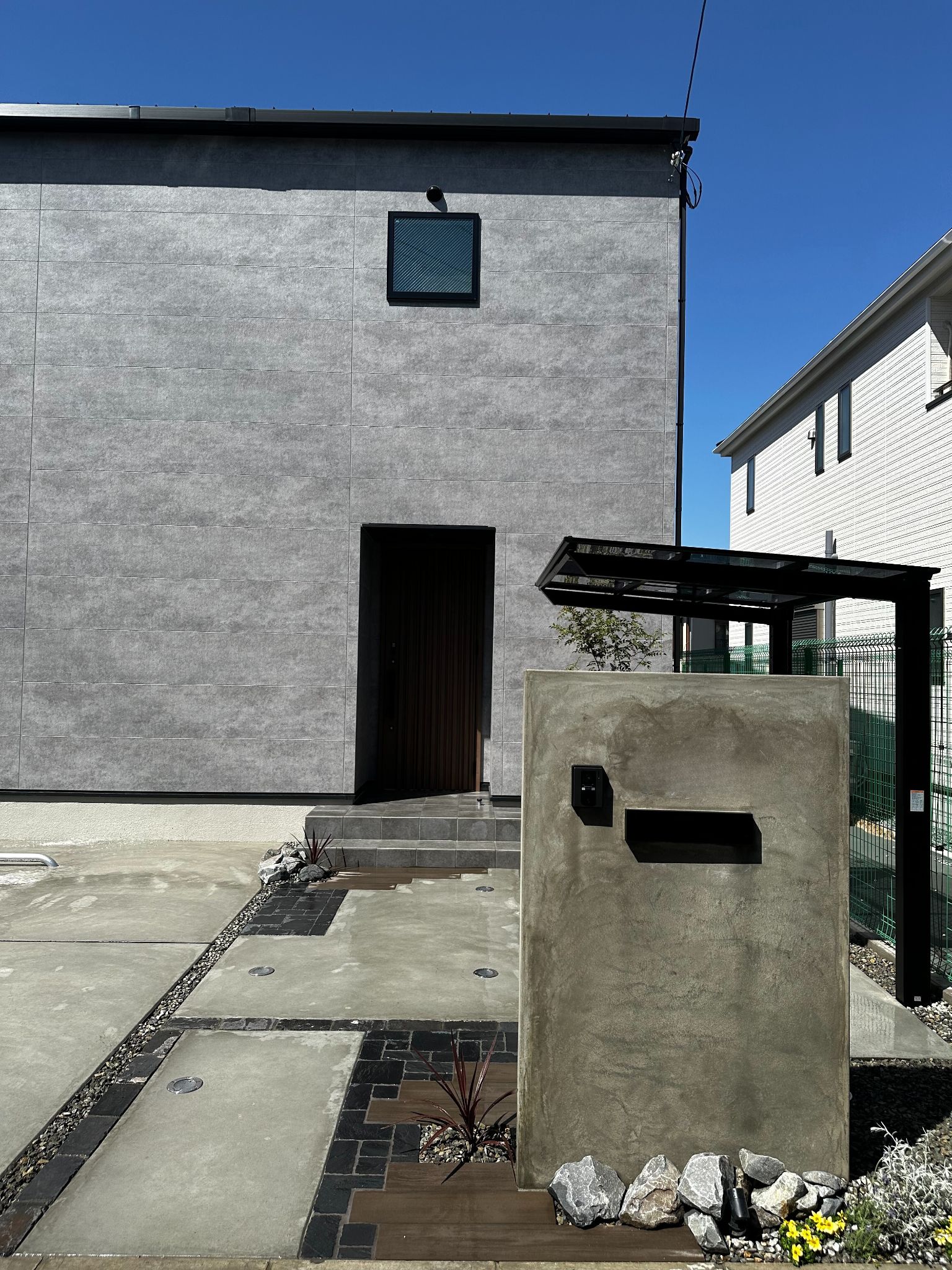 外構全体の雰囲気もグレーと木目調に統一しました。