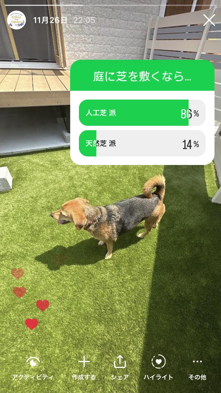 人工芝86%、天然芝14%との結果が出ました!