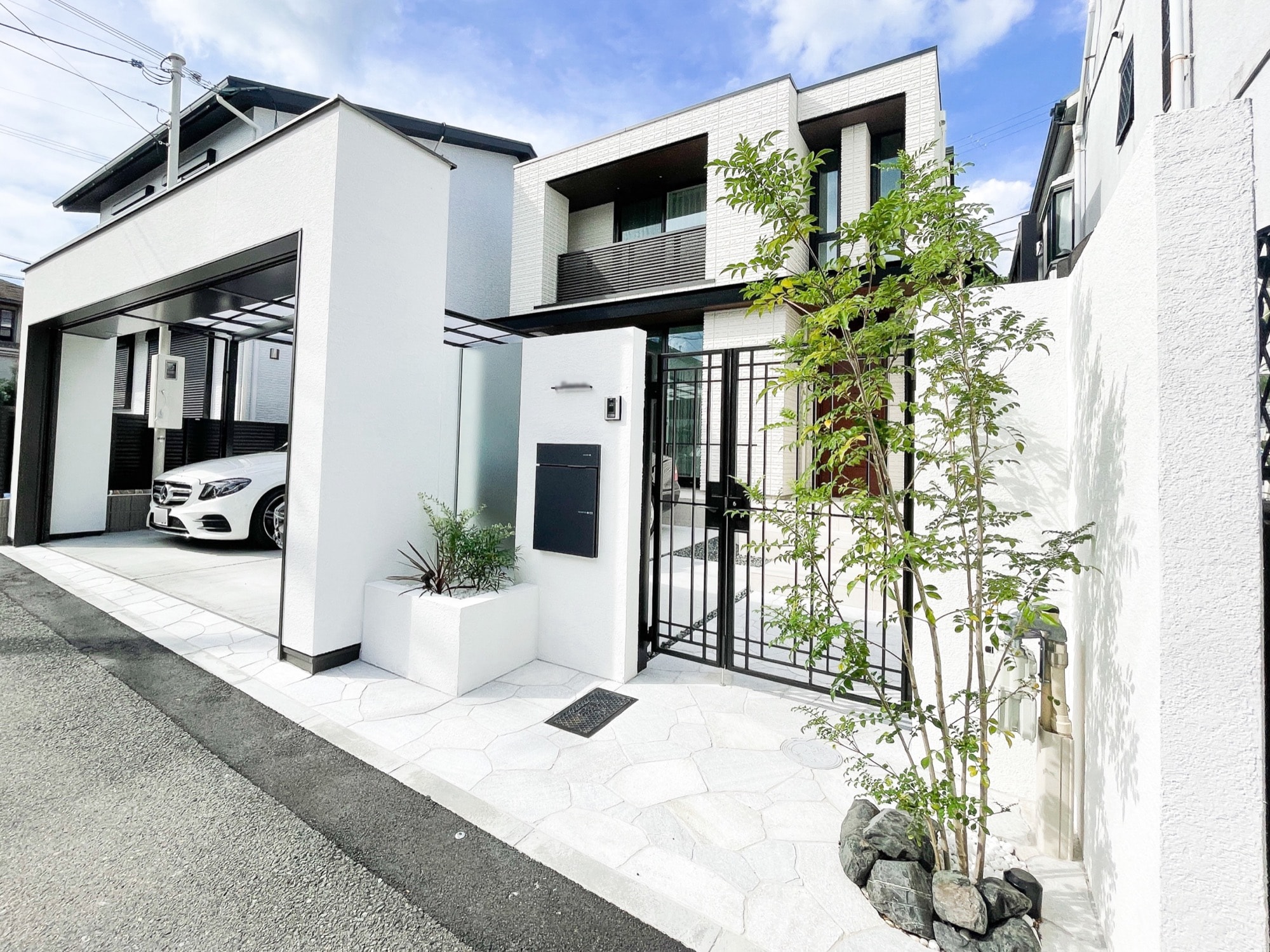 白を基調にシンプルかつ上品なイメージを意識したエクステリア。