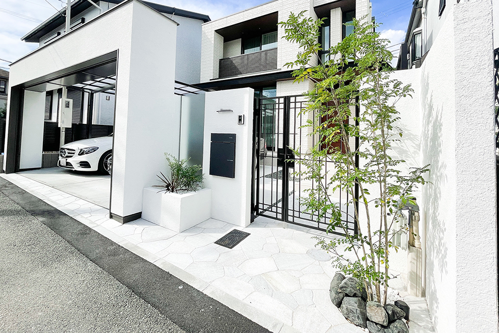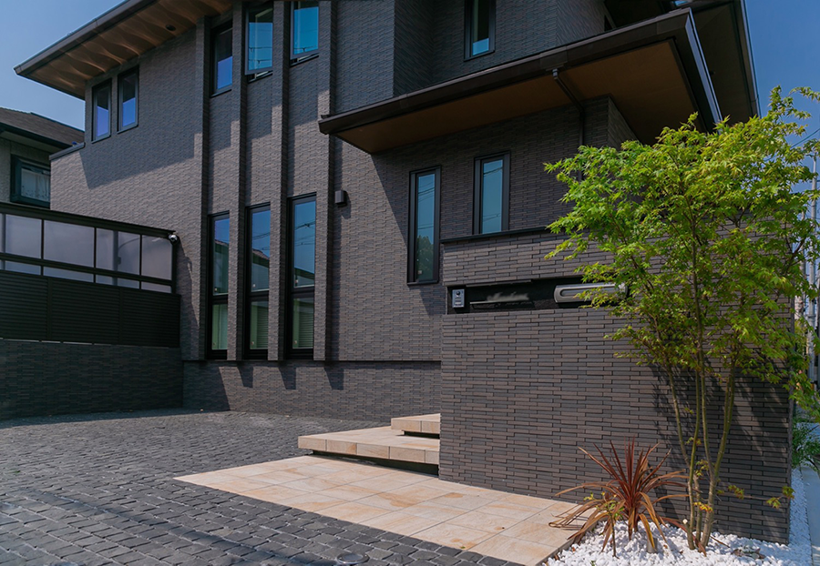 お家の顔とも言える外まわり(外構)。タイルなどの素材や色合いを合わせて住まいと調和させることでスタイリッシュで全体にまとまり感が生まれます。