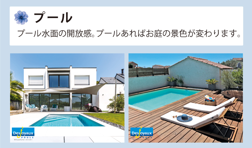 お庭の大きさや目的にあわせたプールの施工から、プールを含めたお庭全体のプランニングまで、お客様の素敵なプールライフを応援いたします。