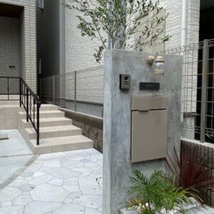 14. 大阪府大阪市 ナチュラルモダンモルタル仕上げの門柱