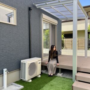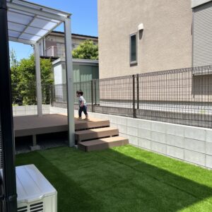 お庭はウッドデッキ&人工芝で、お子さまがのびのび遊べる空間に。