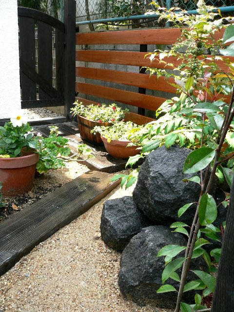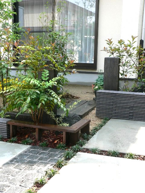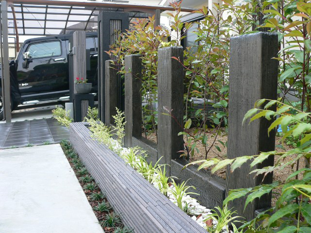 黒の濃淡を基調としたK様邸は、石材と木材などの異なる素材で 同系色の中にも変化をつけ、落ち着いた趣が感じられます。