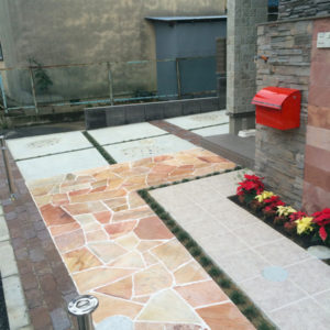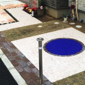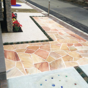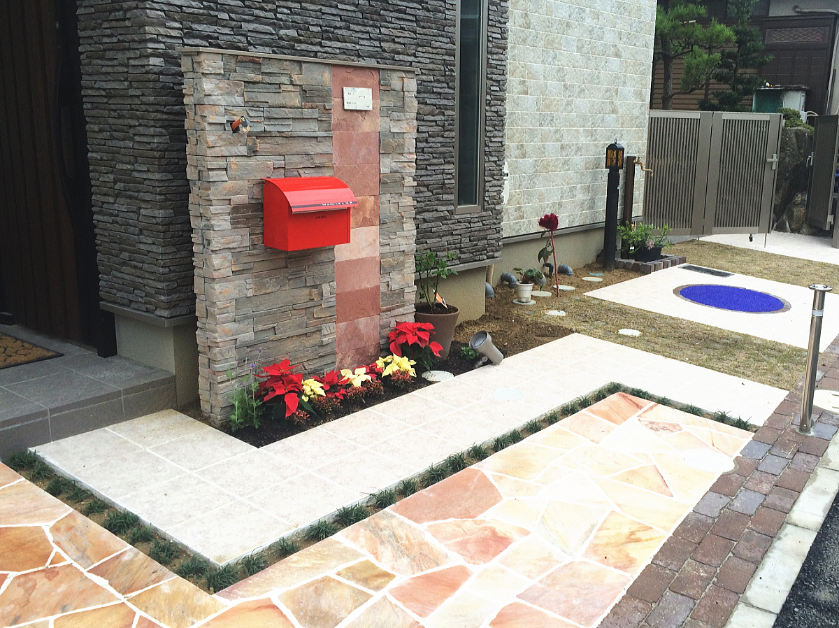ガレージには緑化ブロックを使用し、芝生を植えることにより緑が加わり優しい雰囲気になりました。