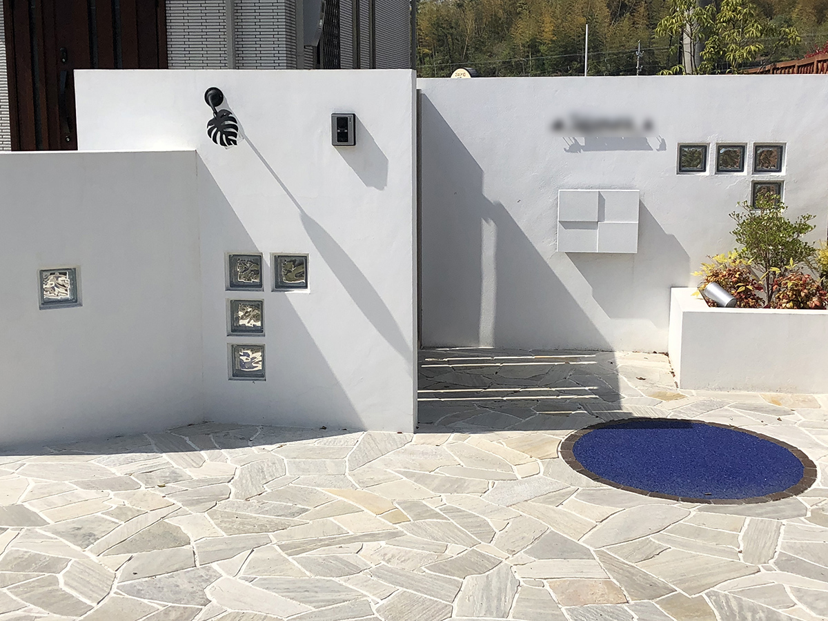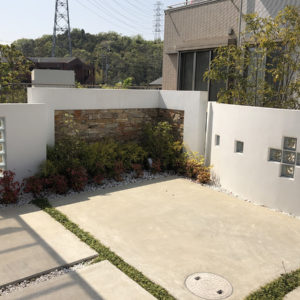 白を基調とし、採光にもアクセントにもよいガラスブロックを使用しお住まいを引き立てる外構に仕上げました。